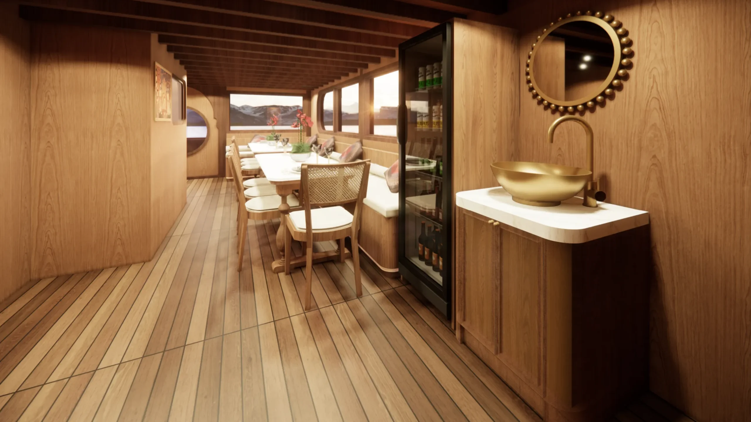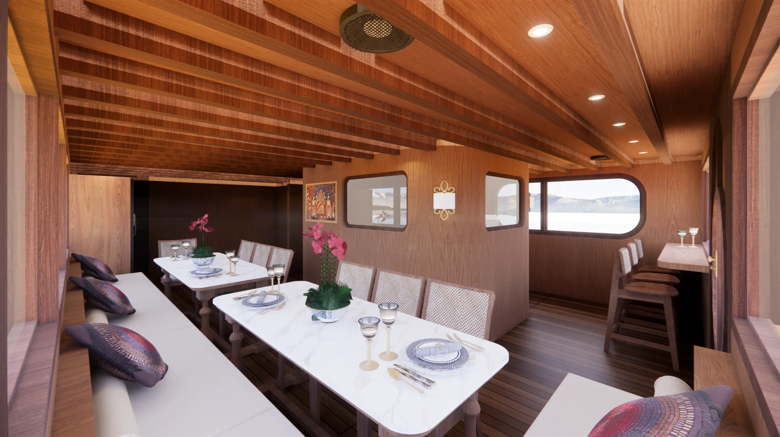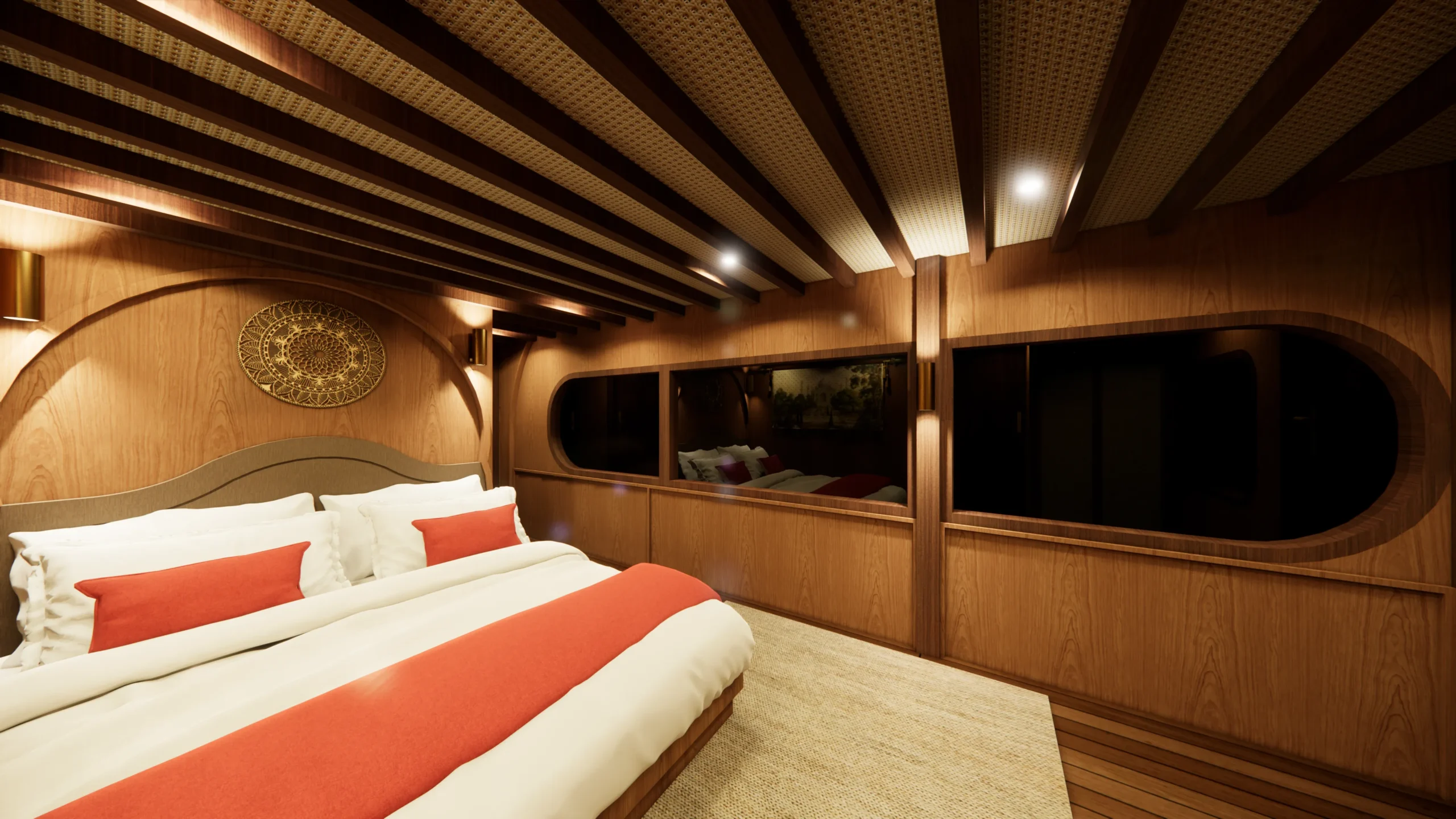 ocean-view portholes, enjoy the perfect blend of Indonesian teak interiors and modern luxury.