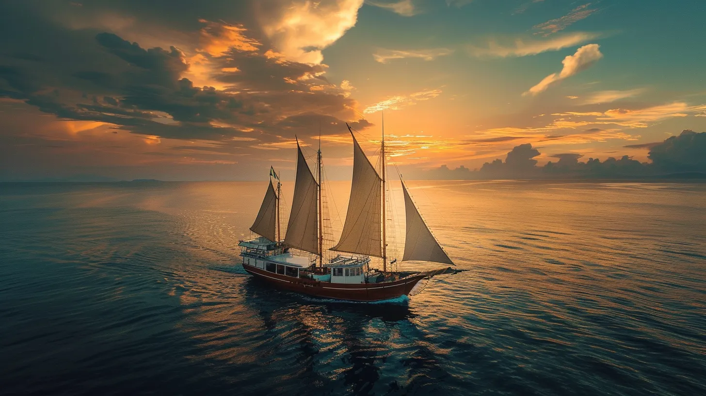The day begins with the gentle sway of the yacht and the sound of waves lapping against the wooden hull. As the first light paints the horizon, guests are greeted with a slow, unhurried breakfast on deck. Fresh tropical fruit, warm pastries, and coffee brewed strong enough to rival the sea breeze. It’s the kind of morning that makes you forget everything that came before this moment.